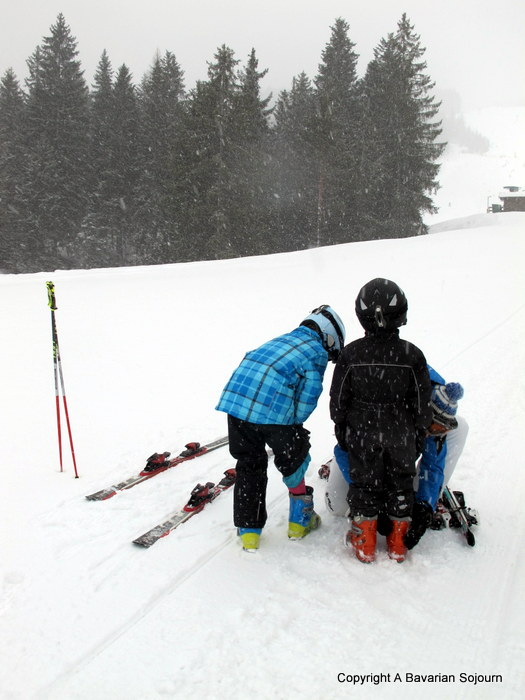 Oh no… My son was a little like this in the beginning, until we left him and his sister in the capable hands of a very young cool Austrian ski instructor. Worked wonders! Basically we had to run off when they weren’t looking, but it didn’t take long before they were having fun! :D
