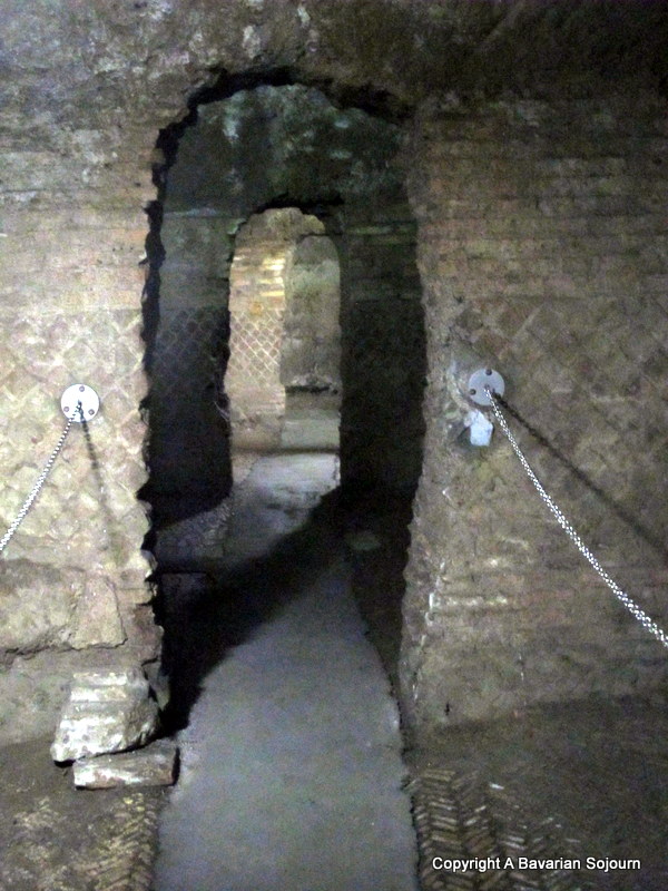 With the catacombs of Saint Sebastian well and truly explored (and the church above admired, it’s got quite a ceiling!), and with many a imaginary skeleton spoken to, we headed up into daylight and onto our next visit. This time the glorious San Clemente Church. Above ground Nicole pointed out the patchwork of ages sewn together. Ancient Romans were great recyclers and it’s not uncommon for an item from a completely different era to pop up in something built several centuries later – but you might never actually notice these things if they weren’t pointed out! Here too we went underground, paying our respects to the layers of history which included pagan temples and even parts of an old Roman house. Then onwards and upwards to the top layer again where we visited a few more secrets including a chapel ceiling with the best optical illusion…