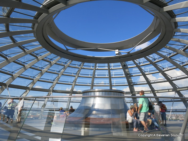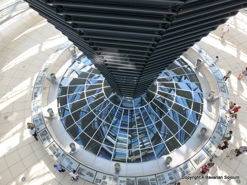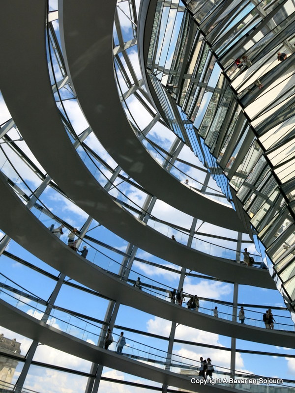 Today’s iconic dome was designed to symbolise the reunification of Germany, and the marriage of old and new architecture works particularly well. As soon as the lift doors open, Norman Foster’s structure is quite breathtaking.
