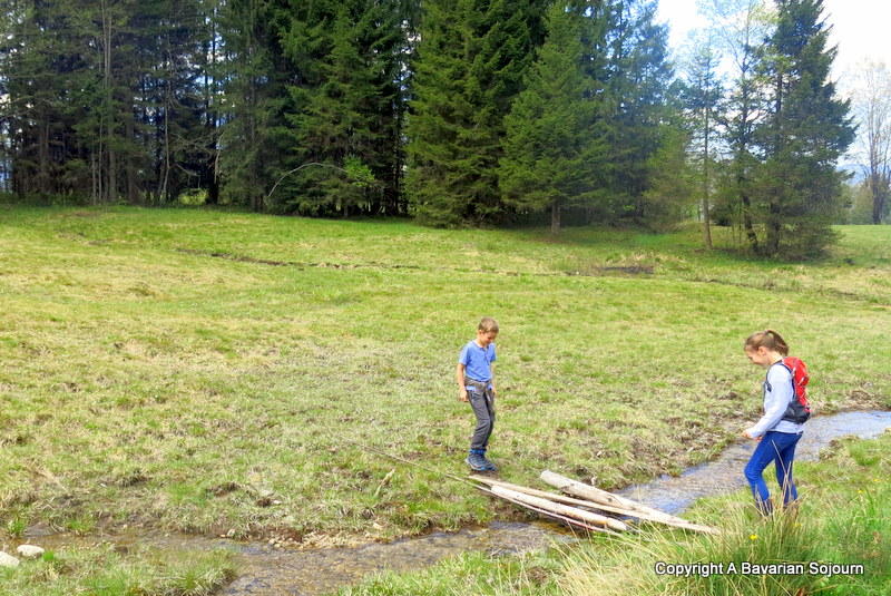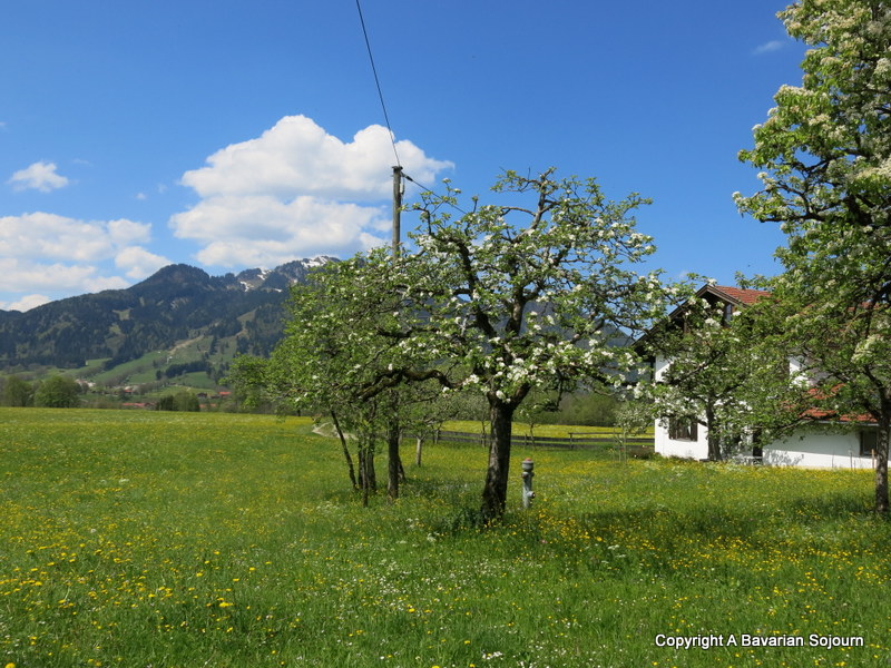 Thanks to the dreaded lurgy that hung around most of last week, we weren’t able to get up to all that much whilst my Mum was here, but by the weekend people were well on the mend, and the weather was glorious, so we cobbled together a tiny picnic and headed to the foothills again, this time just outside of Lenggries for a much longer walk than our winter “Walk in the Woods”, in the lush Spring meadows.