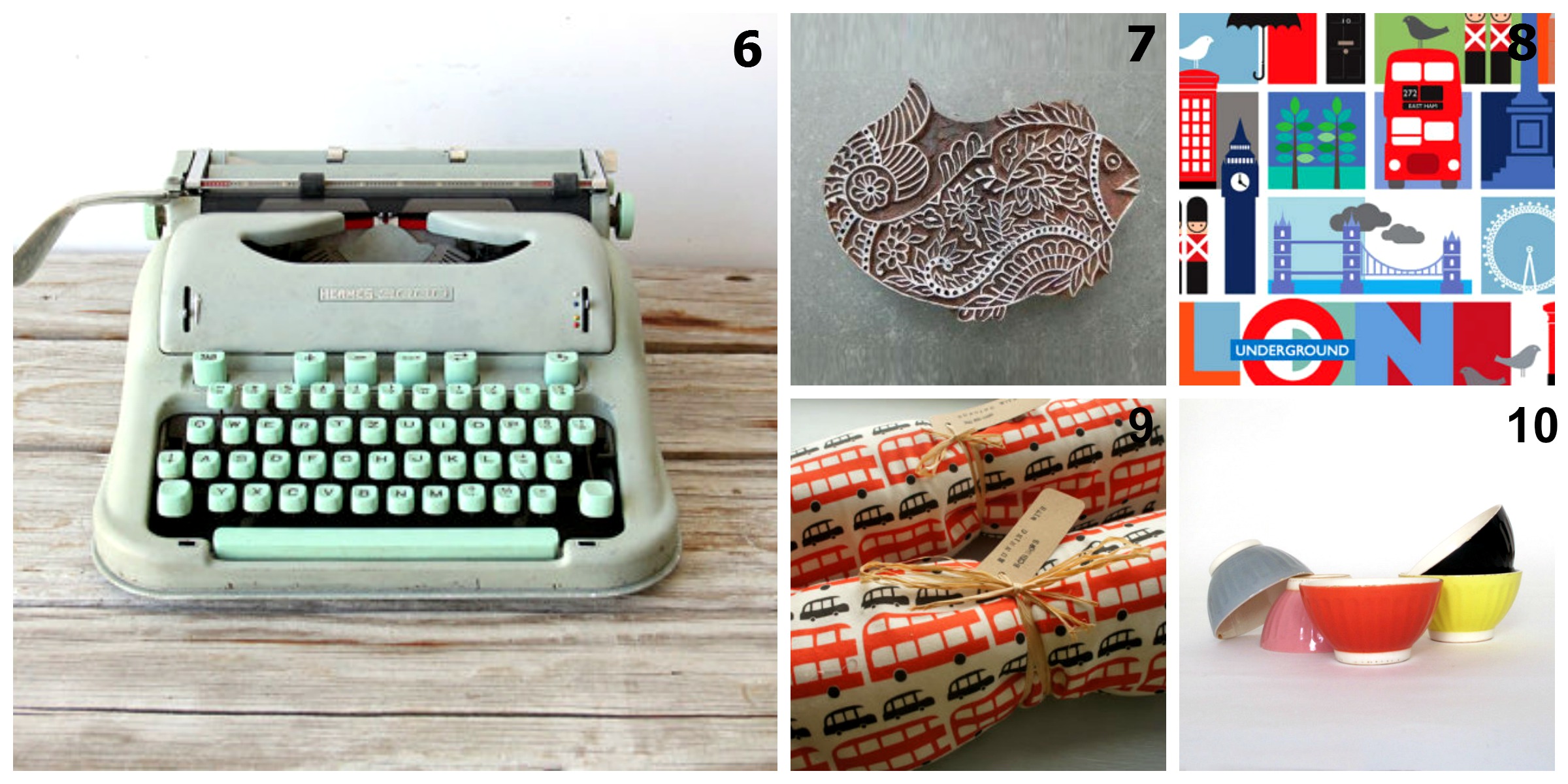 One of the things I like the best about Etsy, is that behind its flashy website is a whole host of normal (yet incredibly creative!) people like you and I, who want to sell their wares – to the likes of you and I! Being invited by Etsy to become part of their European Affiliate Campaign means that if you choose to buy something through one of my handpicked links, then I might earn a tiny bit of commission! But of course you don’t need to click through these links should you wish to buy something. Although if you do, I am going to put anything I earn towards that peppermint green Swiss typewriter. No really!