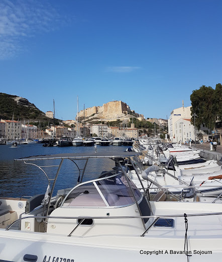 The Citadel is divided between the old town, and a few ancient military fortifications towards the end of the peninsula, which are worth exploring too. Walk past the covered market place (there’s a gorgeous shady courtyard to the back of here if you are in need!), through the archway with the sky blue door, and out past the huge abandoned barracks (quite eerie, and home to the French Foreign Legion once upon a time) and the Church of St Dominique. Follow the road through the car park, and you will be rewarded with some spectacular views back across the old town, and down to Bonifacio Harbour…