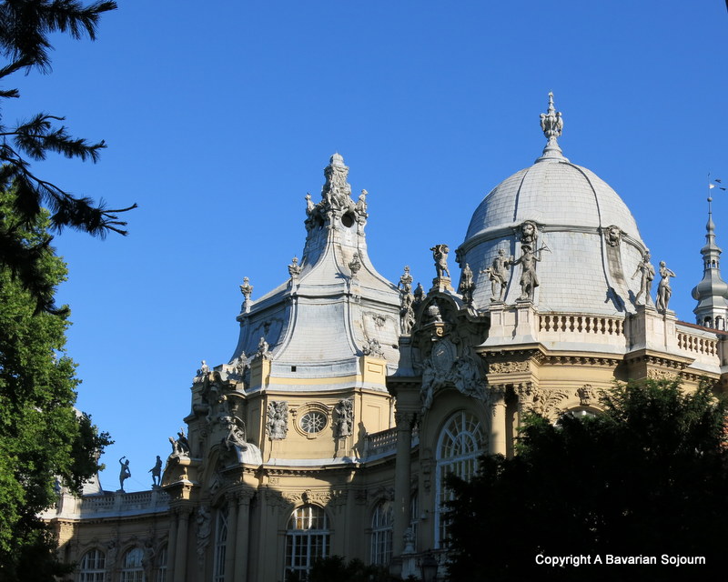 We spent a happy hour wandering map free on our first evening, investigating the City Park (just behind Heroes’ square) which was hosting a big food festival at the time (feeling very familiar to us temporary Munchners!), admiring castles, the beautiful Hungarian Agricultural Museum, and the faded grandeur of the (currently empty) boating lake/ice-rink.
