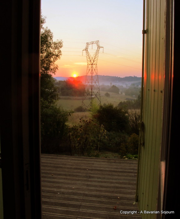 This last picture paints the memory that will stay with me from that briefest of brief stays… Being woken by a blade of golden light slicing the room in half, and the Small Girl hurrying out of her bed to throw the shutters open wide so that we could spy the sun rising, and watch as it spread its fingers through the mist, and out across the rolling French countryside. Magnifique…