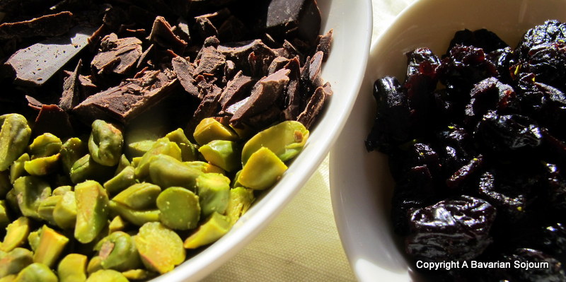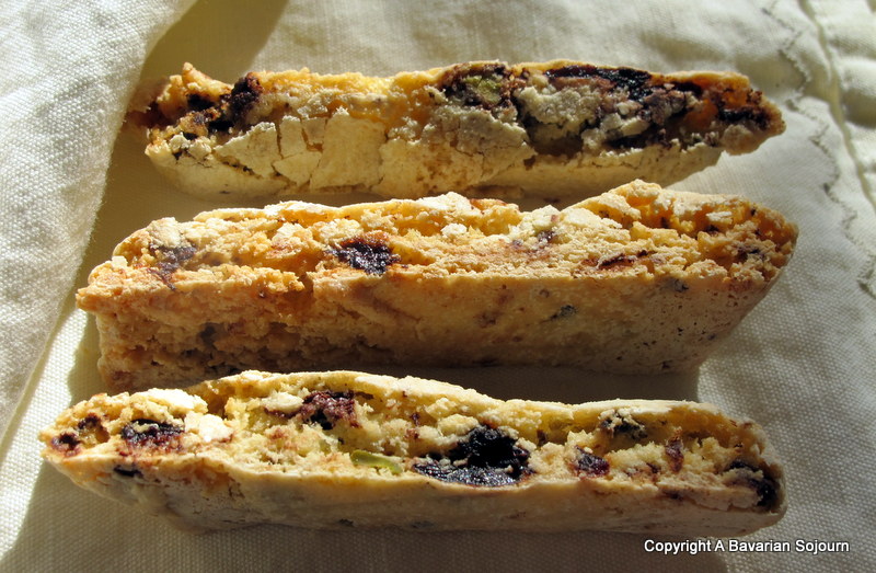 Cherry, Chocolate and Pistachio Biscotti (makes between 32-40)