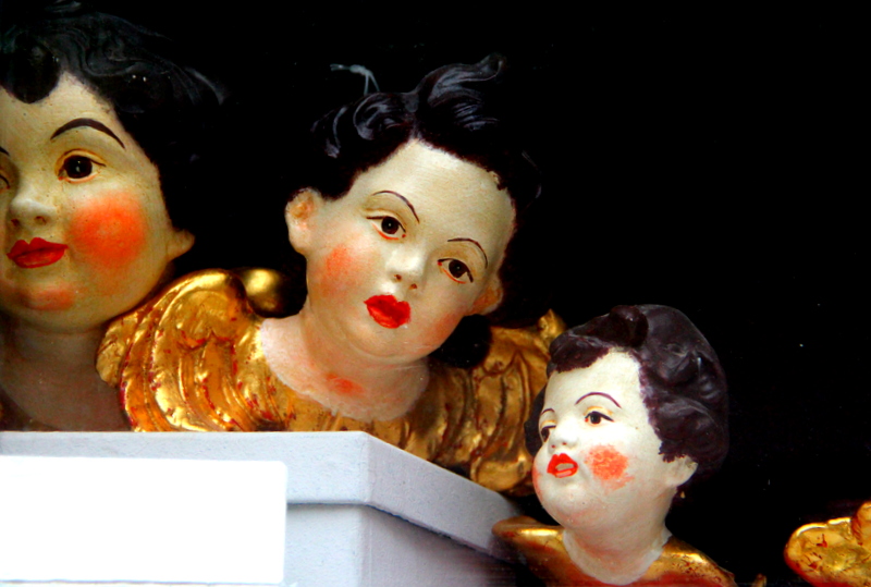 In a shop window a few days ago… it was dark and thundering and these were quite spooky looking out! :D