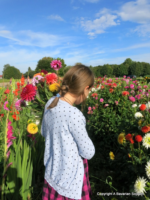 So before she doesn’t need me anymore, we carved 45 minutes of time with just us in the flower fields (sans little brothers) last weekend (it’s a start!), surrounded by the most glorious gaudy colours, and bathed in the late summer sun. And in that time, I managed to confirm my hopes that she’s happy, and taking everything about this new chapter of her life in her stride (despite the fact that this school is possibly even more intimidating than your typical secondary school environment as a) it’s in a Schloss where all the floors and doors to the rooms look confusingly the same, and b) the children are there until the age of 18, so there are even more huge people to feel incredibly small and inferior next to. Although I am somewhat jealous of the first part (as a child who finished school in the 90’s, my lessons were certainly not held in rooms with gilded ceilings – in fact if you dared to look up in any of my classrooms you were likely to either be hit in the face with a prittstick that had been dangling somewhat threateningly for some time, or a big fat wad of chewed up toilet roll!), you can keep the second part.