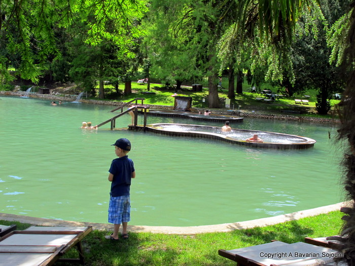 Getting in to the Lake (there are two by the way) feels a little strange at first. As you climb down the concrete steps of the bath house, and into these gorgeously warm waters, your toes immediately sink into gravel reminding you that this is not a swimming pool, this is a swimming lake – and one full of health giving properties at that (the waters contain bicarbonate, calcium and magnesium amongst other things).