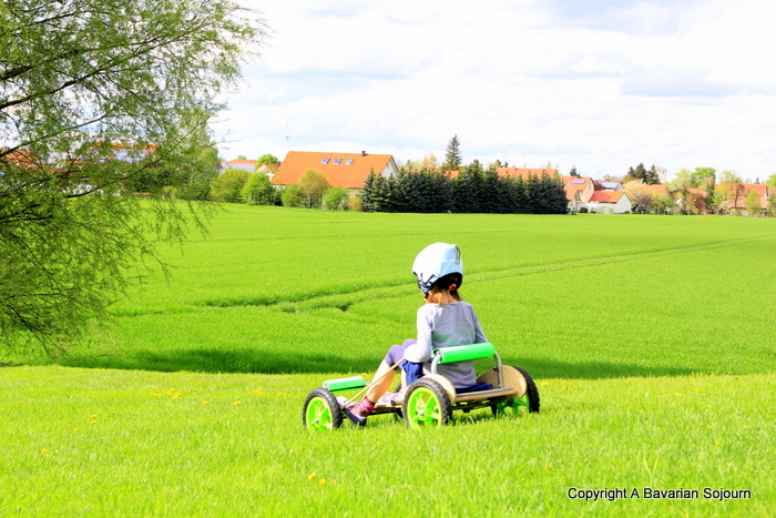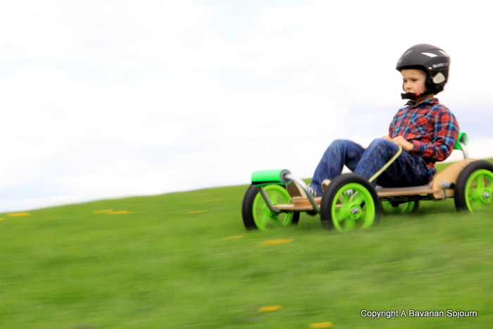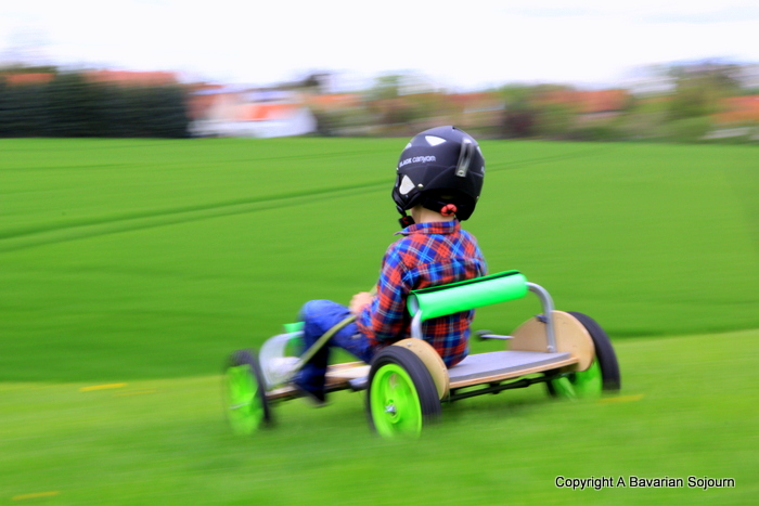 I have a friend whose husband is one half of the design duo that came up with the ATK*, a fantastic All Terrain Kart which does exactly what it says on the tin. Sadly (for us at least) in a couple of months they will relocate back to the UK. So, before they could get packed up and start to think about disappearing, I begged them for an opportunity to borrow one for the day so we could give it a test run in the Bavarian hills.