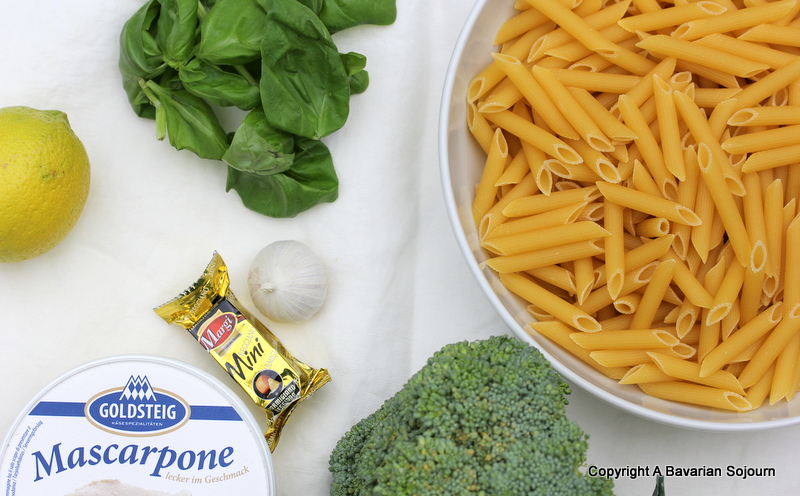 A Summer Mascarpone Broccoli Penne with Basil, Parmesan and Lemon: