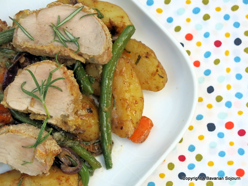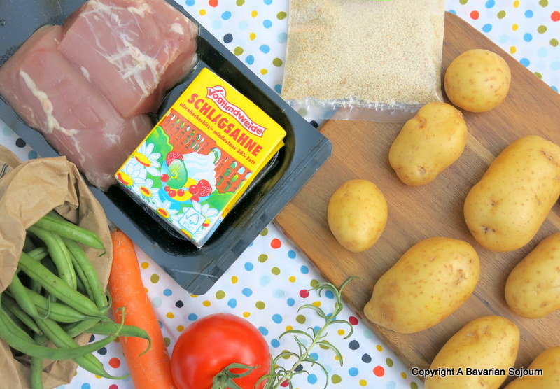 As well as the ingredients, our box included three recipe cards with which to create our meals (in German here obviously, but they are on the HelloFresh site too so you can translate them if needs be!). Our selection for the three days was a Delicate Pork Fillet with a Mustard Crust with New Potatoes and Vegetables in a Cream Sauce: