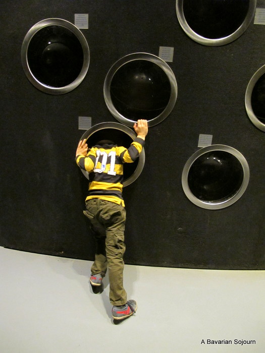 The second floor is all about sensory noise, from exploring the first sounds we heard in the womb, to the varied sounds of the outside world. We stuck our heads inside countless pods to travel to numerous cities by listening to their collective city sounds – something that fascinated the Small Boy, and that we had to drag him away from. Mind you, I had to be dragged out of the Polyphonium, a large darkened room designed as a place to relax and appreciate the music being played on the best quality sound system I have ever heard… Some more dancing might have taken place in here.