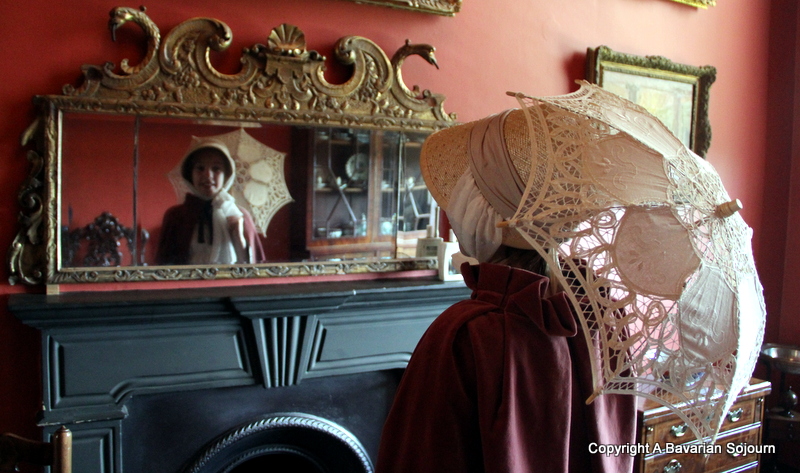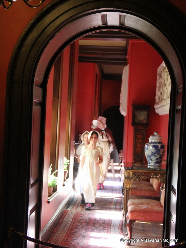 Obviously we took advantage of the opportunity to dress in Regency costume for a wander about the place (whilst Mr R enjoyed the grounds with the smallest member of our family as per the new family rules of my Eyam post!). Even the usually reluctant at dressing up Small Boy got in on the act (although he did moan that boys of the time must have been blinking cold wandering around just wearing a jacket – his star wars t-shirt was pleasantly “confiscated” by the lovely dressing room ladies for not being historical enough)!