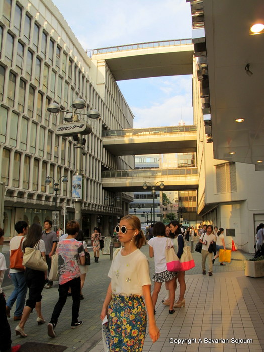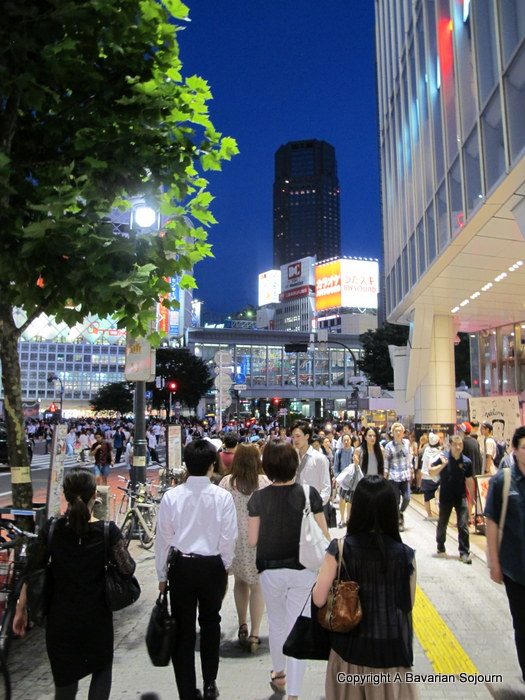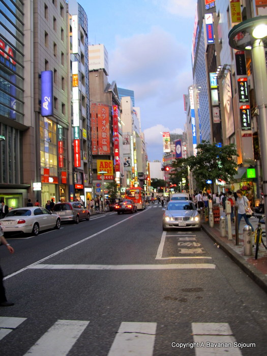 Our first hotel, The Sheraton Miyako in Meguro provided an oasis of calm after trips into certain parts of Tokyo (where it was so busy it was hard to make out an individual person from the rapidly moving swarm at times). Our room overlooked a beautiful leafy Japanese Garden and was spacious and comfortable. On arrival, the two small members of the family seemed devoid of jet lag symptoms and set about pressing all the buttons on the various gadgets in the room. One of them managed to switch on the TV, and bizarrely enough tuned into a Japanese food programme on the Viktualientmarkt in Munich….