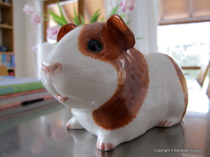 A week of getting used to a new addition too, something I am blaming entirely on my Sister and Brother in Law, as they were the ones who gave a rather lifelike ceramic (guinea) piggy bank to The Five Year Old for Christmas. So attached was he to this “ginky-bank” that he took to carrying it around at every given opportunity. As soon as he woke up in the morning, he would come downstairs with “Ginky” tucked dangerously under one arm. At meal times Ginky was plonked on the table, and “force-fed” lettuce leaves donated conveniently from his own plate, and at bed times his owner secreted him around the house in places he thought Ginky might be warm and comfortable, but could at times have signalled his demise. How poor old Ginky hasn’t ended up smashed to smithereens, is beyond me. And all the while, this fawning over Ginky had me feeling terribly guilty. Guilty that this Expat life doesn’t always make allowances for things such as pets, something we always always had as children.