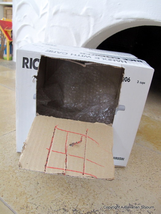 As I watched my son take such good care of this ceramic creature (under no pretence that it will probably be me doing all the hard work with a real animal), I still pondered whether we should get a real one, as surely learning how to care for something responsibly is good in a life lesson kind of way? Anyway, if it was all part of a master plan on his part to guilt his parents into letting him have a pet, he did a pretty good job. When I watched him spend a couple of hours fashioning Ginky a house out of a rice-cooker box, his work was done. He had succeeded in pushing his mother over that pet-buying cliff.