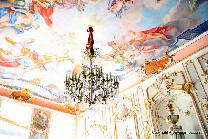 Love the lighting – the way the chandelier stands out, and the amazing ceiling has a heavenly glow about it. Beautiful x