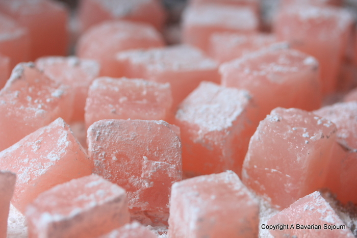 I don’t think anyone is entirely sure of it’s origin, some stories involve amorous sultans on missions to impress countless mistresses, whilst others credit its creation to a Turkish sweet maker, whose small packages of Lokum were bought as love tokens. Both stories involve love though I will give them that, and the spice shops of Sarajevo too were full of people on the search for packages of Lokum to take home to their loved ones.