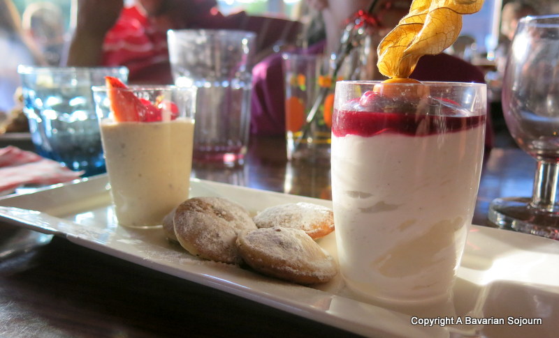 The food is mostly Dutch comfort food. The kind you would have grown up with in these parts, and typically involving a lot of potato and meat, but it’s good (there are of course plenty of vegetarian options). Along with the soup, we also had a tasting plate of various cheeses, smoked fish and little pastries, then it was on to the mains with mash with kale and smoked sausage going down well, and Mr R opting for ribs, chips and coleslaw. Then on to the serious matter of pudding, Dutch fruit cake, and a little tasting plate of poffertjies (a little like flat aebleskiver), a vanilla pudding with fruit compote and a spekulaas brulee. Service is friendly and unhurried (severely unhurried in our case, but that was not really an issue)…