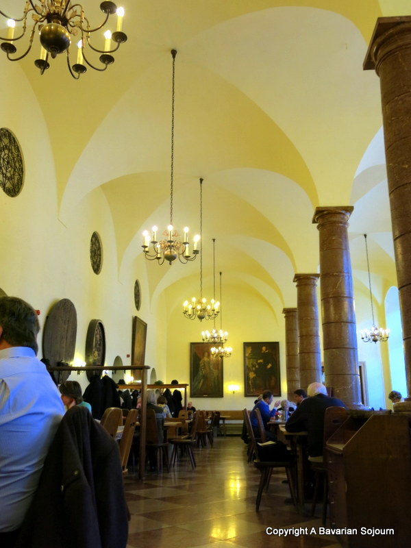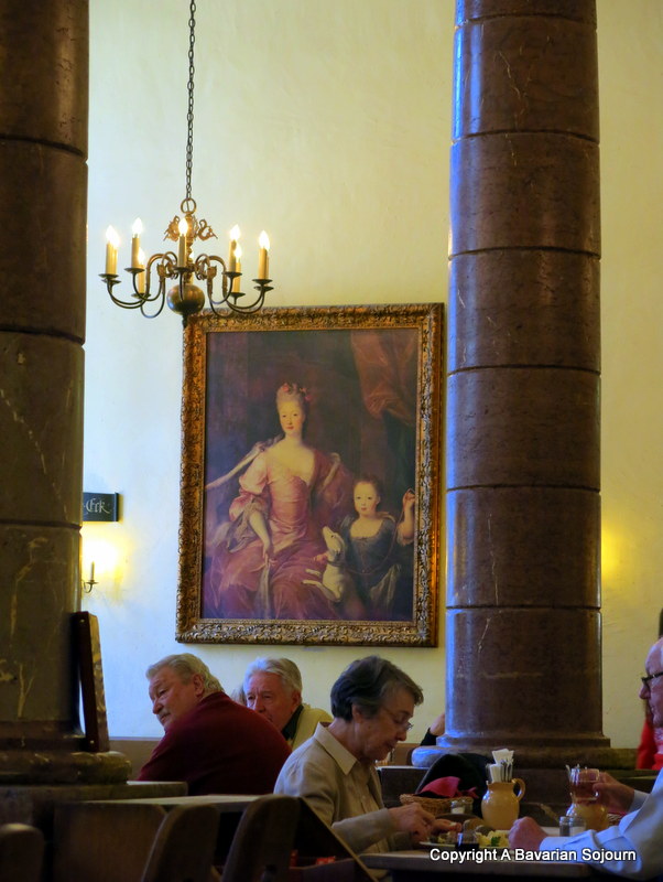 Do book a table in the front room on a weekend (during the week you can usually sit down wherever there’s a space) where you have a choice of things to keep you amused – perusing the vast wine card, admiring the gorgeous vaulted ceilings, the people watching of locals that have been coming here for years, and/or admiring the glorious artwork (this place is attached to the Residenz after all). Don’t wonder if the painting that looks familiar is Henry the VIII by the way – it’s not, he’s a Bavarian Prince apparently.