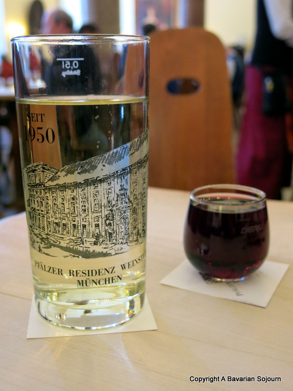 If you are visiting Munich but hate beer, and think you might have limited choices, fear not. There are plenty of options to choose from in your average bier keller alone (including a wide range of fruit juices both with and without fizzy water, and usually a couple of wines too), but if wine is definitely more your thing, you might want to visit somewhere that specialises in that (purely from the Pfalzer region alone here though – the clue is in the name) and doesn’t even serve beer – this place should definitely do the trick. Choose from thimble sized tasting glasses (OK, slightly bigger than thimble sized at 25ml), medium respectable sized glasses, or great big weinschorle (spritzer) glasses.