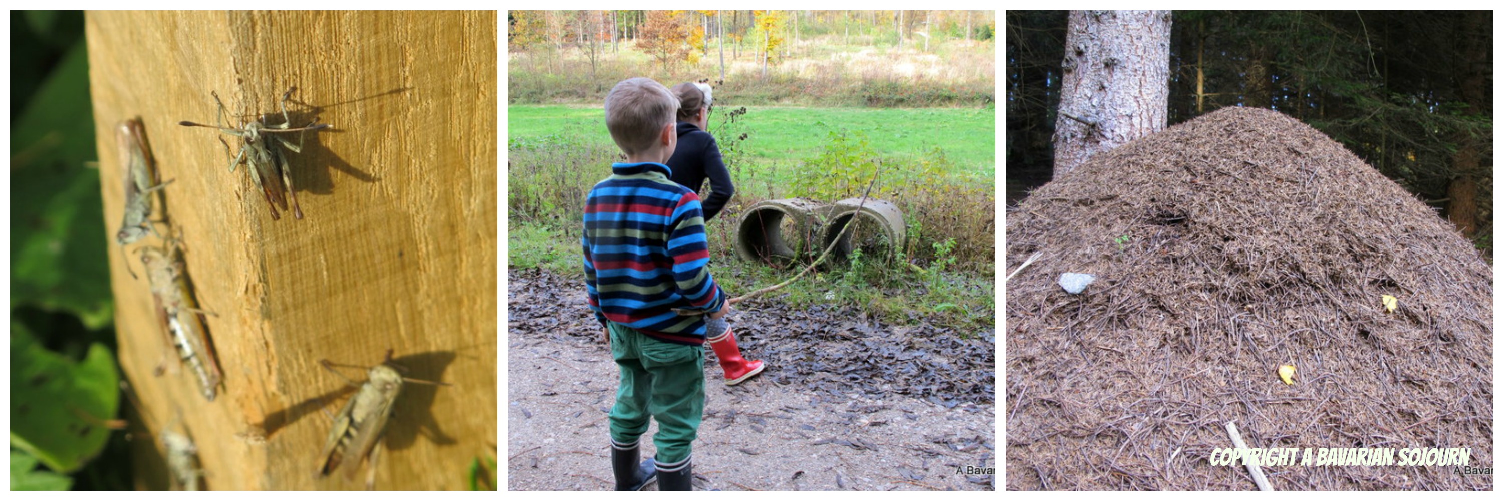 And as the day wore on, the more diverse it became. From the close inspection of a large gathering of grasshoppers (a birthday party according to the 6 Year Old!), observations of the surfaces of giant ant hills that seemed to move and swirl in all directions. Discovering a pair of Giant’s binoculars, and the thorough analysis of the leaves of specimens we had first admired during our summer travels.