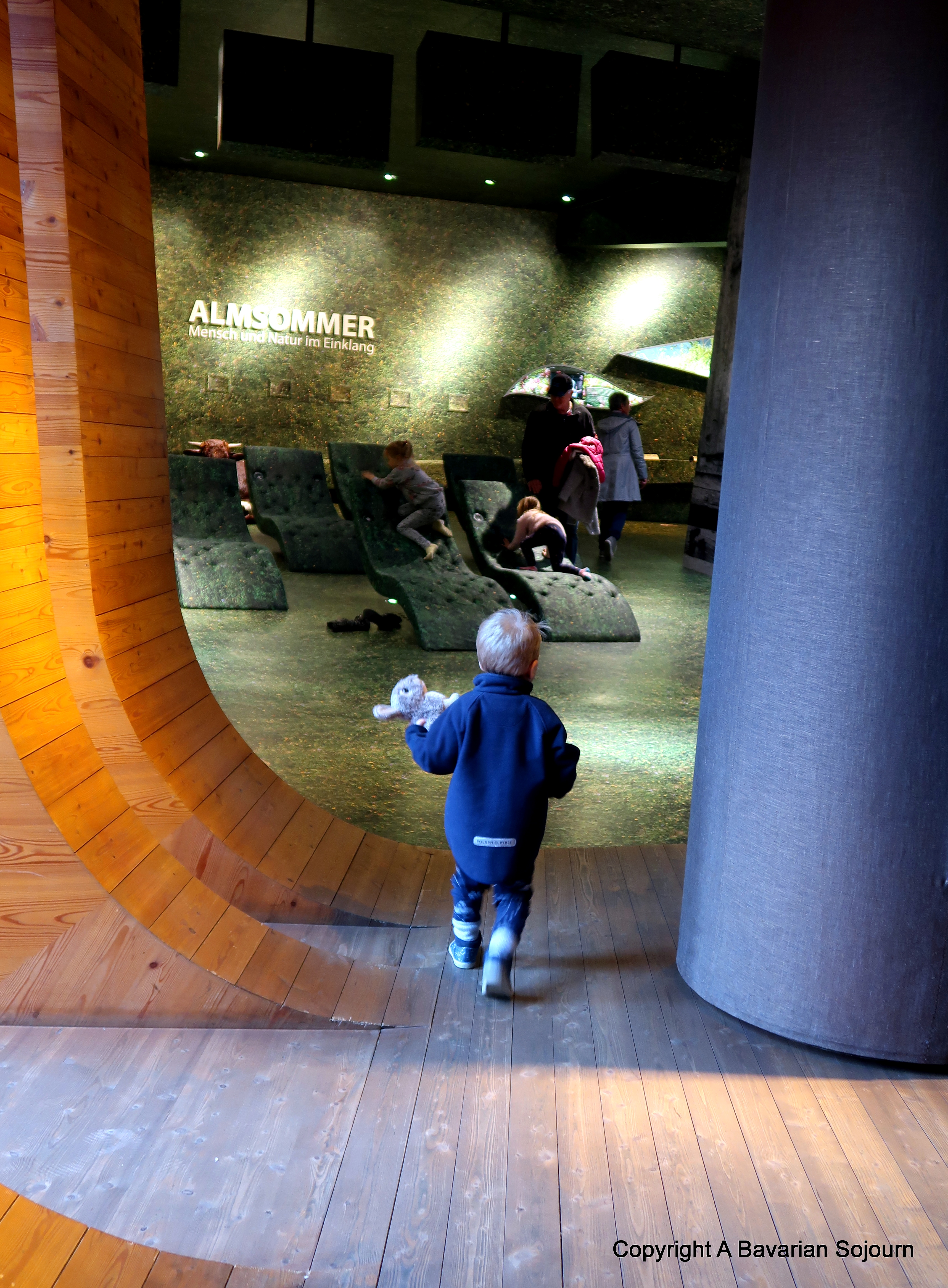 There are little caves to hide in, plus a 3D film about the origins of the Tauern Window (which I would love to be able to tell you more about, but gather that it’s something to do with tectonic plates and a special geological region of scientific interest in the park!). The Toddler and Bum bum weren’t particularly into this aspect of this exhibit, having set their sights firmly upon the cows in the High Pastures Life area next door…