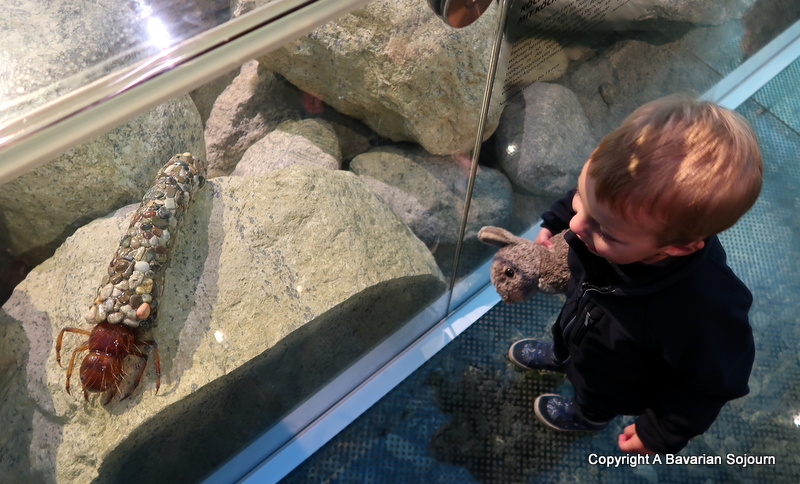 The World of Water is actually situated to the left of the High Pastures Life area, but exploring the museum this way around just seems logical. Here you can imagine what it’s like to be a trout (easier for some than others I imagine!) deep under some crystalline alpine stream, and come face to face with a few stranger looking creatures as well. This room is quite beautiful, and intrigued the Toddler and Bum Bum for quite some time…