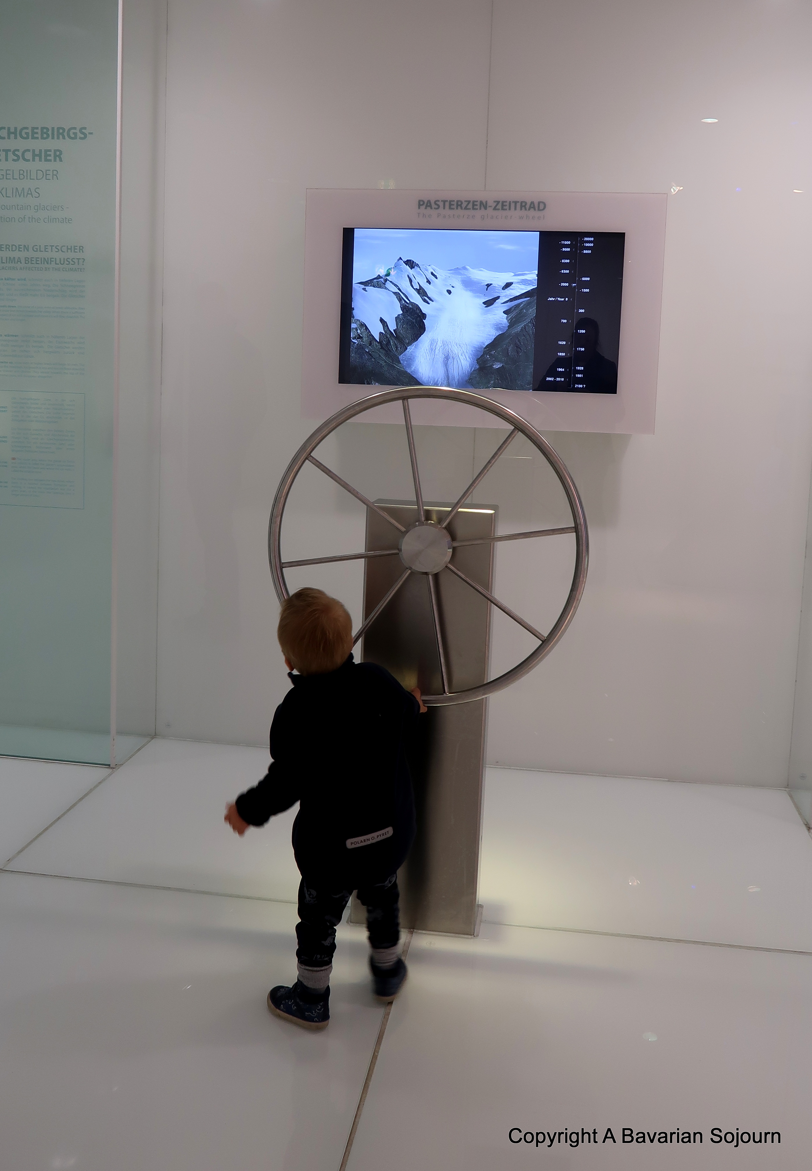 The largest is at the base of the GrossGlockner itself, and you can investigate a slightly stomach churning exhibit, steering the wheel to find out how big the glacier used to be, and how much it’s shrinking year by year. If this kind of thing doesn’t keep you awake at night yet, believe me it will after studying this. This room also features an actual glacier that you can touch and feel – and if your parents aren’t watching you closely enough for a split second, have a quick go at doing this to it too…