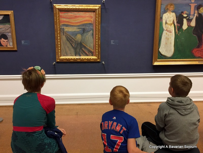 Great that the kids could get to sit in front of Munch’s The Scream. It always surprises me how colourful it is – in my head it’s in black and white because the lines are so strong. I’d love to go to Norway – it’s very much on my list of places to visit.