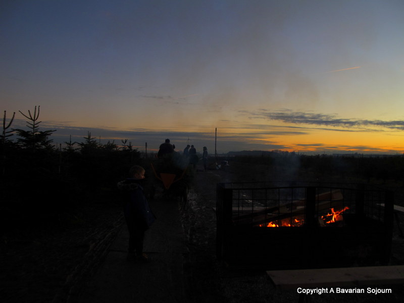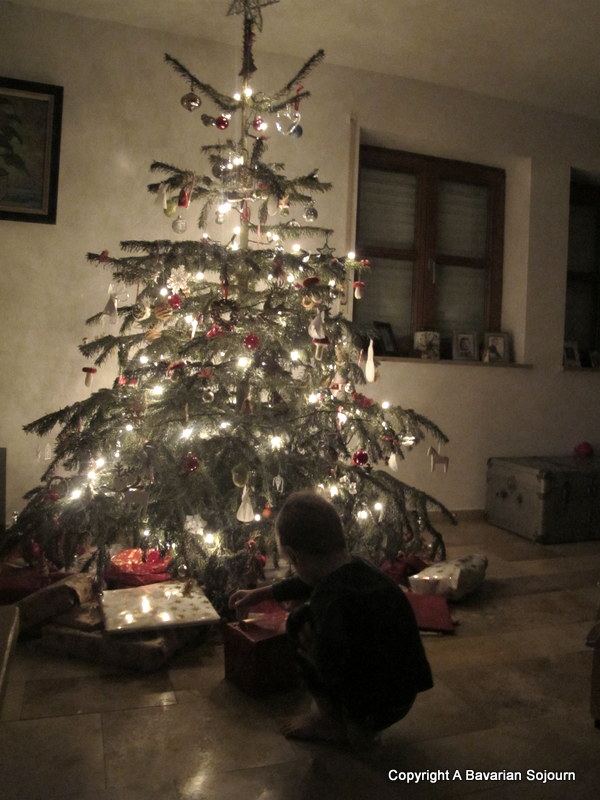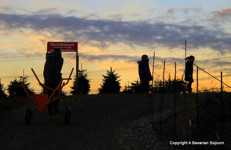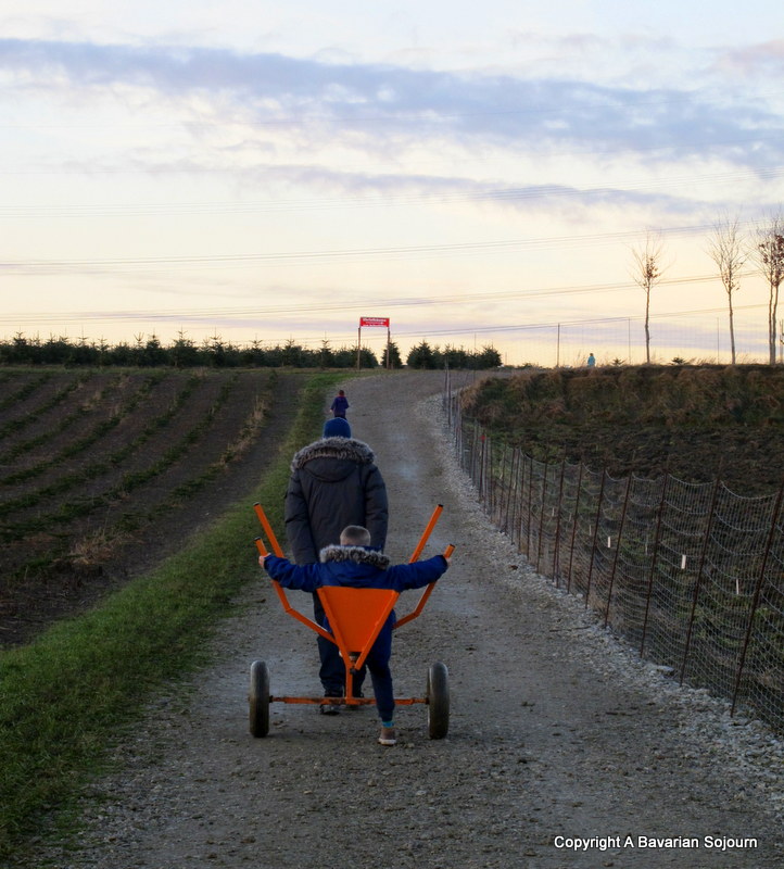 And with the stunning backdrop of the Bavarian Alps showing off at sunset, we selected our tree, apologised to it for cutting it down (one day when we move somewhere with a long-term garden, we will go back to the potted version, promise!) and tried to ignore the mud (and the small Boy now covered from head to toe in the stuff) as we trundled back down the hill again with our prize….
