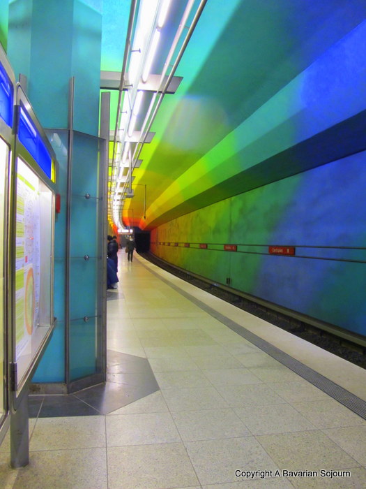 This next picture (taken at Candidplatz) is probably my favourite of the day – I love this particular U-Bahn Station, it is so different. Munich only started building its underground system in the Sixties, hurrying it along for the Olympic Games in 1972 – which means a lot of the stations reflect these eras in their design…