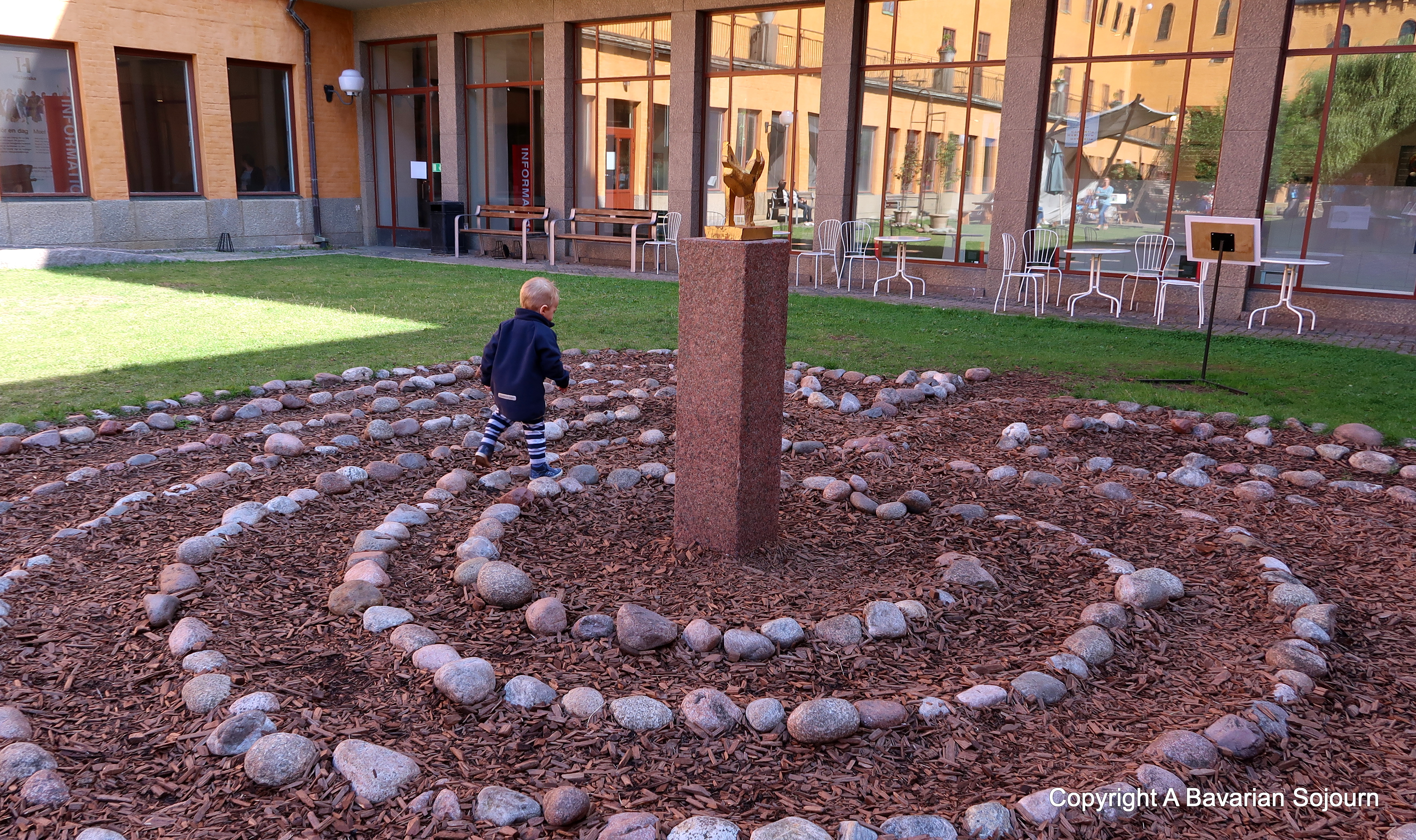 Our first stop the following morning (after a brief tour of our friends gorgeous apartment overlooking the city’s rooftops) was Stockholm’s Swedish History Museum that was holding a special Viking Experience. Given that our friends are Danish, and our older two are well versed in all things Viking thanks to their early years in Copenhagen, this was right up their street. So, whilst we grown ups got to catch up, the children were able to decipher Rune Stones, make viking bread, do a spot of archery, wallop each other off a pole with feather stuffed pillows (can’t imagine vikings doing that in all honesty!), make necklaces, and typically lose at tug of war. The toddler, who is a bit of a thug at the best of times, was completely in his element, tormenting his older siblings as they tried to concentrate on various tasks, begging for bits of their bonfire baked bread, and spending an inordinate amount of time carefully following this intricate stone maze, where he would stumble to the middle until he reached what he announced to all and sundry was a chicken (If anyone can shed any light on what it really is, I would be most appreciative!).