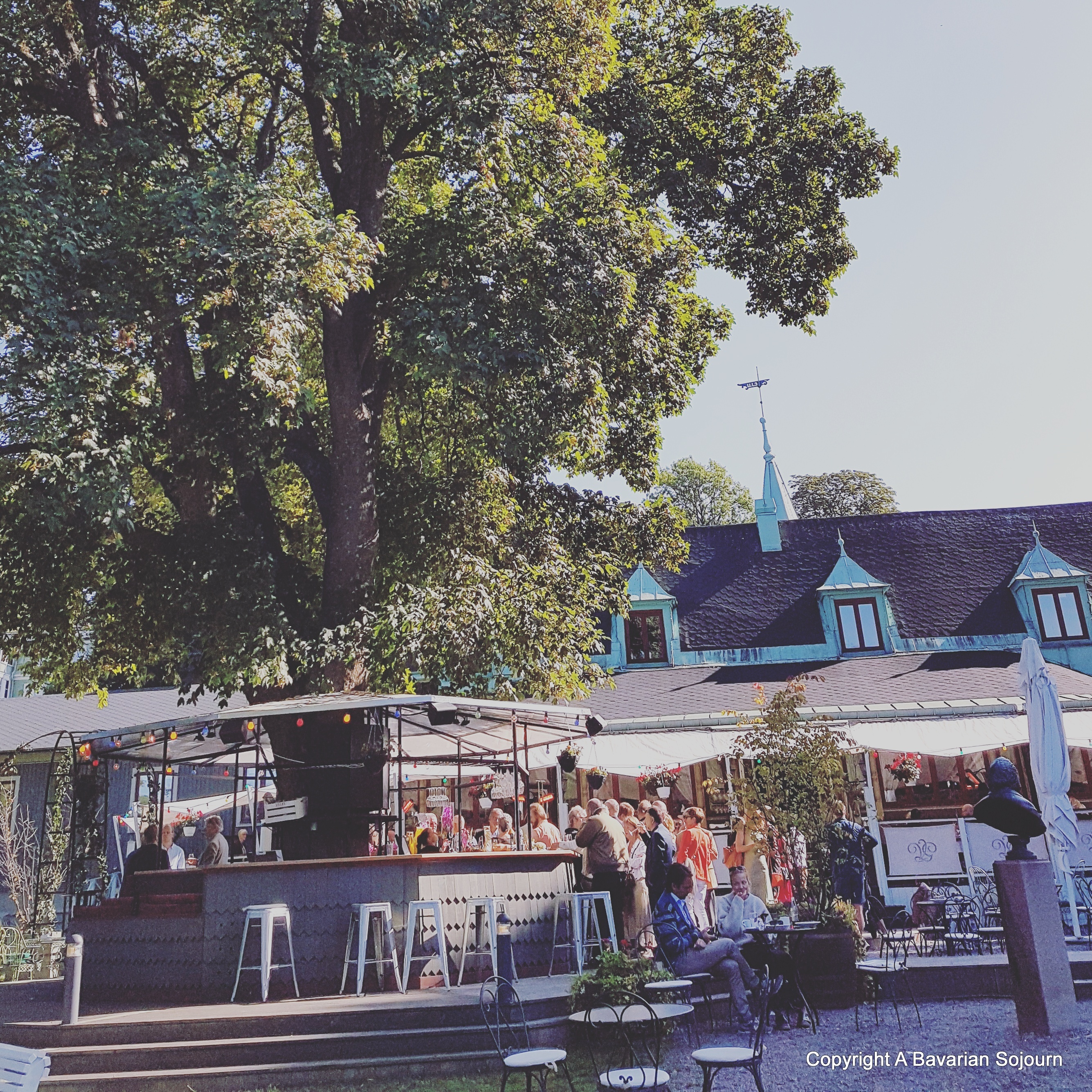 Afterwards we headed down to the water for a walk, and a bit of a guided tour along the way =- passing the imposing Nordic Museum, the wonderful Junibacken, Vasa, Gröna Lund, the Absolut Vodka Museum (who knew that was Swedish?), and the most gorgeous tiny wedding on a Viking boat in the harbour – finally settling at an outside table at the very sweet Villa Godthem, – a restaurant with a huge garden by the water, just in time to capture the last of the day’s sun…