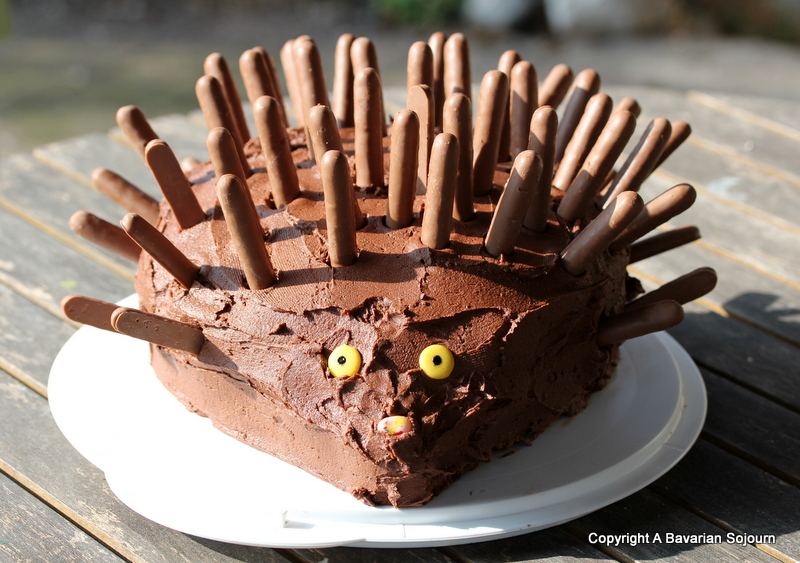I have been quite lucky this year, as he too gave me a reprieve in the birthday cake department! He opted to hold his party at one of Munich’s few soft play centres (as hellish as their UK counterparts – but often the easier party option!). Having been to a party here previously where the birthday boy had a rather spectacular hedgehog birthday cake, Small boy then got it into his head that it was absolutely mandatory to have the same, and I for one wasn’t about to argue…