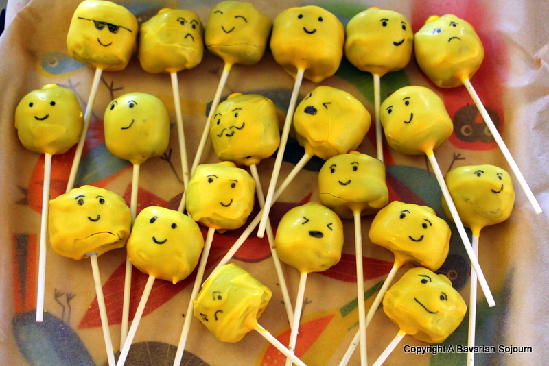 Even the class cakes were easier than last year’s Yodas, and took into account his lifelong fixation with everything Lego (for they are Lego heads in case you can’t tell!!). In the two and a half years that we have lived in Munich, it’s amazing how many more cake decorating things are suddenly available – hence the near perfect yellow tone thanks to cake-melts found in town. No experimentation necessary with white chocolate and food colouring this year… As ever, if you want to make them yourself you can find out how here.