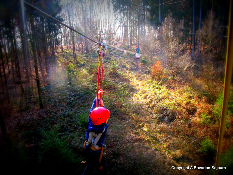 The day after his party was actually his real birthday, and the sun came out properly for the first time this year – reader it was even WARM! We gave him a few outdoor options to maximise family Vitamin D exposure, and he chose to spend the day climbing like a spider at Waldkletterpark Oberbayern . Dangling by a rope from the treetops isn’t my idea of a birthday treat, but if you are newly Seven, it is apparently the best thing ever (Mr R. took the photo below just in case you are wondering!!)….