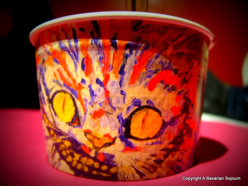 Afterwards we popped out for dinner, followed by birthday ice-cream at the spectacular der Verrückte Eismacher (the Crazy Ice Cream Maker!). We first learned about this place at Oktoberfest last year, when we got talking to a top-hatted character waiting for the same train home – it’s not every day that you see someone in a top hat in Munich after all! Anyway, when we parted he gave us his card and told us we must visit his Ice Cream Parlour – like I am going to say no to that! And I am pleased to say I can highly recommend the artisanal ice cream here, and I am always intrigued by the slightly unusual flavours on offer – weissbier or gorgonzola anyone? I can vouch that the burned almond flavour is truly delicious, and the birthday boy enjoyed sampling Oreo and Easter Egg amongst others in this shrine to Alice in Wonderland… If it is your birthday by the way, make sure you mention it, for you might even be serenaded by the Veruchter EisMacher himself, complete with accordion (and top hat of course!)…