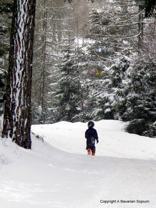 Unfortunately not… Only Austria this time… Small People had a long lesson, and this was the Five Year old marching back as quickly as he could to get his ski boots off. He had definitely had enough! It was a successful day though, and this view of the back of him just made me laugh! :)
