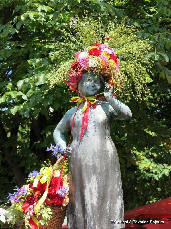 Thanks Neesie. This statue is one of several in the food market in Munich, the statues are really well looked after and quite often sport different floral designs! (: