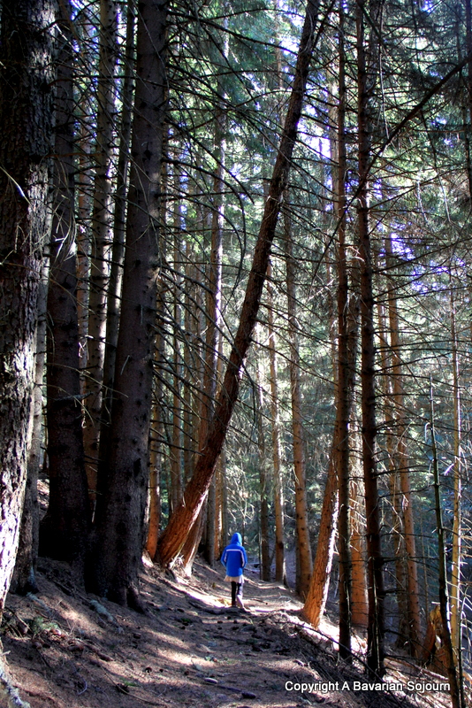That looks a gorgeous woodland walk. We have woods near here and I love to walk through them with my dog. Brilliant prospective on this shot. The young colourful girl with those magnificent trees surrounding her.