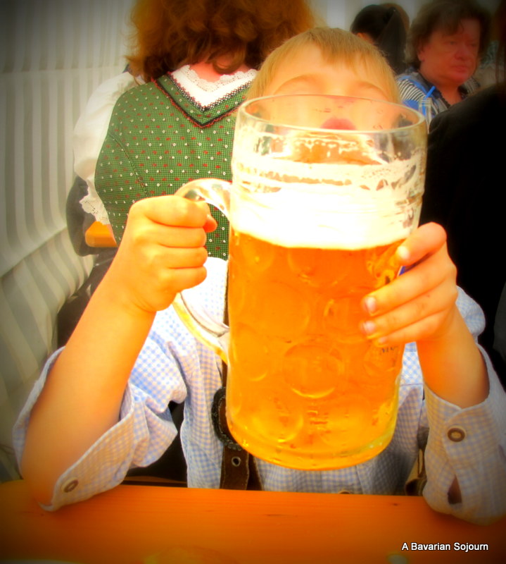 And although Small Girl and I decided not to wear our dirndls thanks to the cooler weather, Small Boy insisted upon wearing his lederhosen much to the delight of our elderly neighbour. And later on, his inner Bavarian decided upon a little weight-lifting challenge especially for the occasion (with his Father’s bier glass obviously!)!…