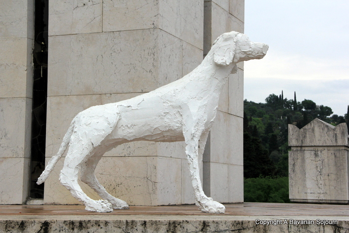 Il Vittoriale is the former residence of the ultra-nationalist (and slightly eccentric) Italian writer, poet, and military figure – Gabriele D’Annunzio. This vast estate with its impressive lake views comes complete with amphitheatre, war museum (the Museo Della Guera), his former residence (The Priory), a huge circular Mausoleum (complete with white guard dog sculptures), and a great big battleship (a present from the Navy- the Light Cruiser Puglia) that takes pride of place in the middle of the landscape. There’s also a building containing another of D’Annunzio’s boats, a cafe, and an auditorium with a light aircraft hanging from the ceiling…
