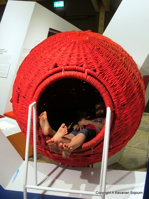 And the experience doesn’t end there. Waiting at the end of the ramp is not only a lovely cafe (that serves a pretty mean Iced coffee), but there is an excellent Visitors Centre which kept us all entertained with little interactive forest scenes, tales and specimens from the Bavarian Wilderness, and interesting little films featuring unbiased interviews with locals about how they felt when the Forest became protected. And best of all, when you need a decent rest after all that activity, there’s a giant-sized Squirrel’s drey that looks far too inviting. Night everyone!