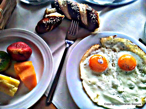 Too bad the weather cut your visit short of the town but hopefully you’ll get a chance to return. That breakfast looks yummy!