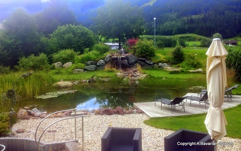 Apart from the gloriously green mountain views, another truly special thing that Hotel Hubertus has to offer guests is its natural swimming pool – filtered and cleaned by plants instead of chemicals. This completely intrigued my Floridian Swimming Pool business owning In-Laws, who had yet to set eyes on such a thing. Somehow I am not sure it will catch on in the land of snakes and alligators, although I wouldn’t mind one with a manatee in it! The chilly weather meant that whilst we might not have been tempted for a dip, the Small People (who are used to Bavarian lake swimming) most definitely were! They loved it, especially with the odd water boatman or frog to say hello to as they swam on by.