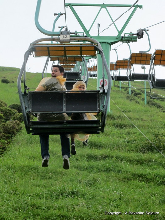 Wow that is awesome i thought there would be a gaping hole too, who in their right mind would travel up a volcano to play archery? just love your daughters eye peeping over the chair as you were carried up the volcano and walking round with her daddy