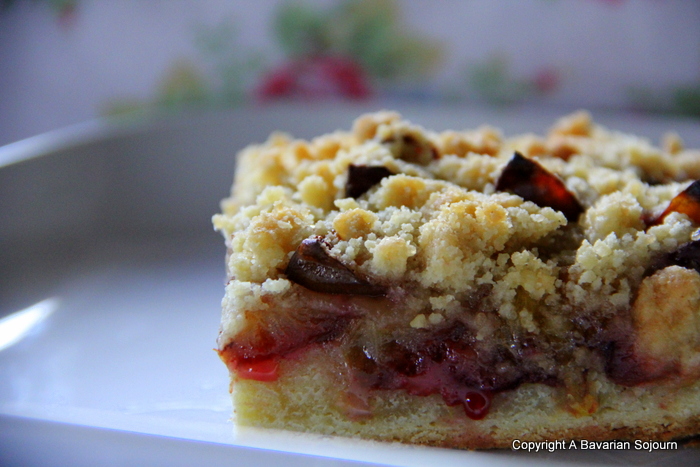 I first tried this a couple of weeks ago on a Sunny Munich morning. The cafe’s shelves were heaving with trays and trays of this stuff, either plain or with streusen (crumbs! The waiter was grateful for my help with the translation of this word to aid his tourist cake pushing prowess!) so I figured it was a speciality and tried a slice, for breakfast. It has fruit on it, it can’t be that bad a start to the day? And as it swiftly disappeared, I wondered why nobody had actually told me about it before – it’s amazing. If you are in Bavaria and come across this, and you do not actually try a piece, then you cannot call yourself a lover of cake OK?