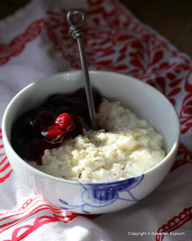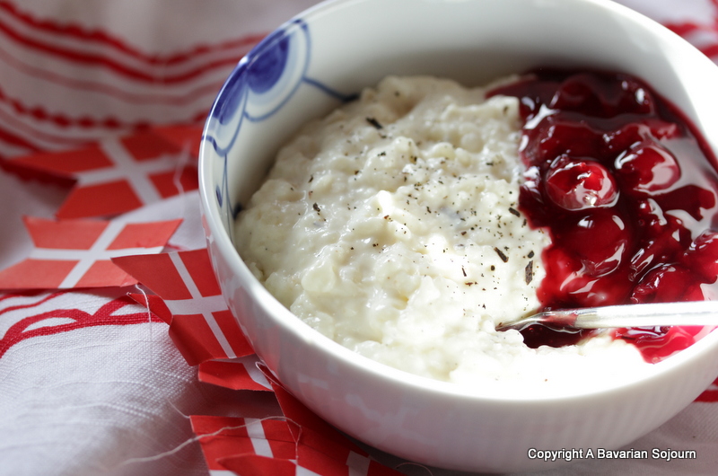 Denmark gave me an addiction to the pastries it’s so famous for (and that don’t bear much resemblance to the soggy bottomed excuses we often try to pass off as Danish pastries at home), as well as an obligatory love affair with Scandinavian Furniture, a fondness for ridiculously cold weather, and a dangerous addiction to candles. Amongst all the recipes that came with us when we left, my favourites have to be for Flæskesteg (Danish roast pork), Aebleskiver, and then there’s Denmark’s answer to Christmas pudding – Risalamande. Traditionally served on Christmas Eve (the most important festive Day both here and in Denmark), cold, packed full of whipped cream with generous dollops of warm cherry sauce, Risalamande might not feature in our house exactly on that day, but we do make it at some point between Christmas and New Year… Like our English Christmas pudd, it also contains a “wish” and one less likely to break your teeth than the traditional coin in our version.