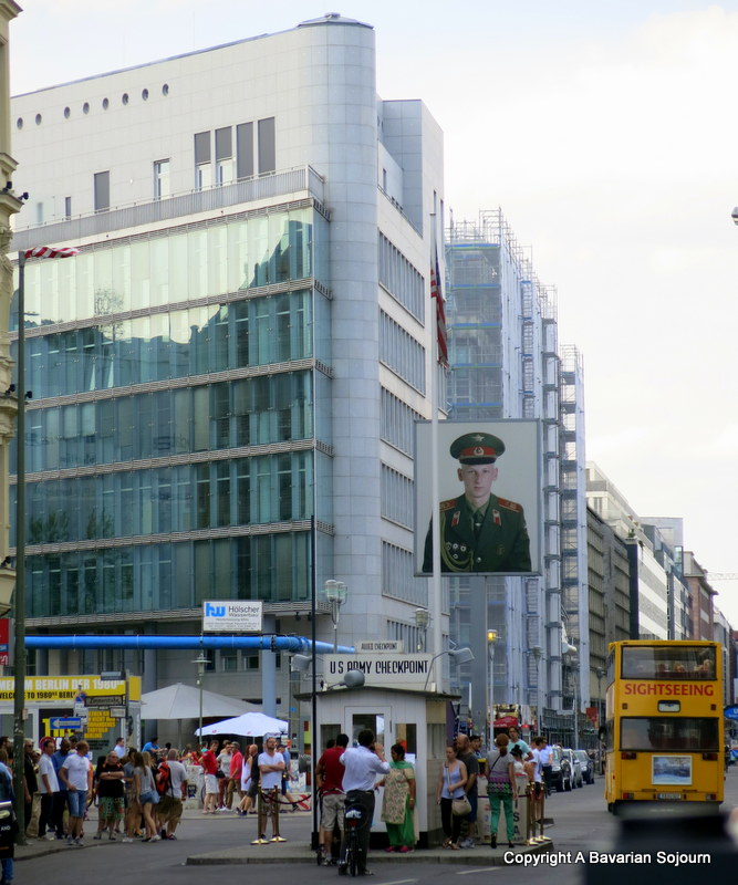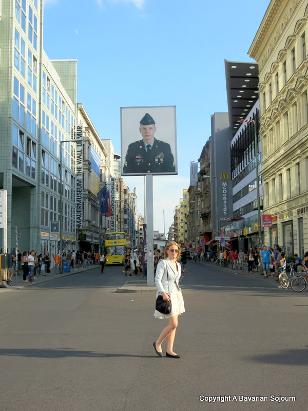 This was taken at Checkpoint Charlie! One of the few Berlin Wall crossing points between East and West in the Cold War! Scary, but American and Russian! :D